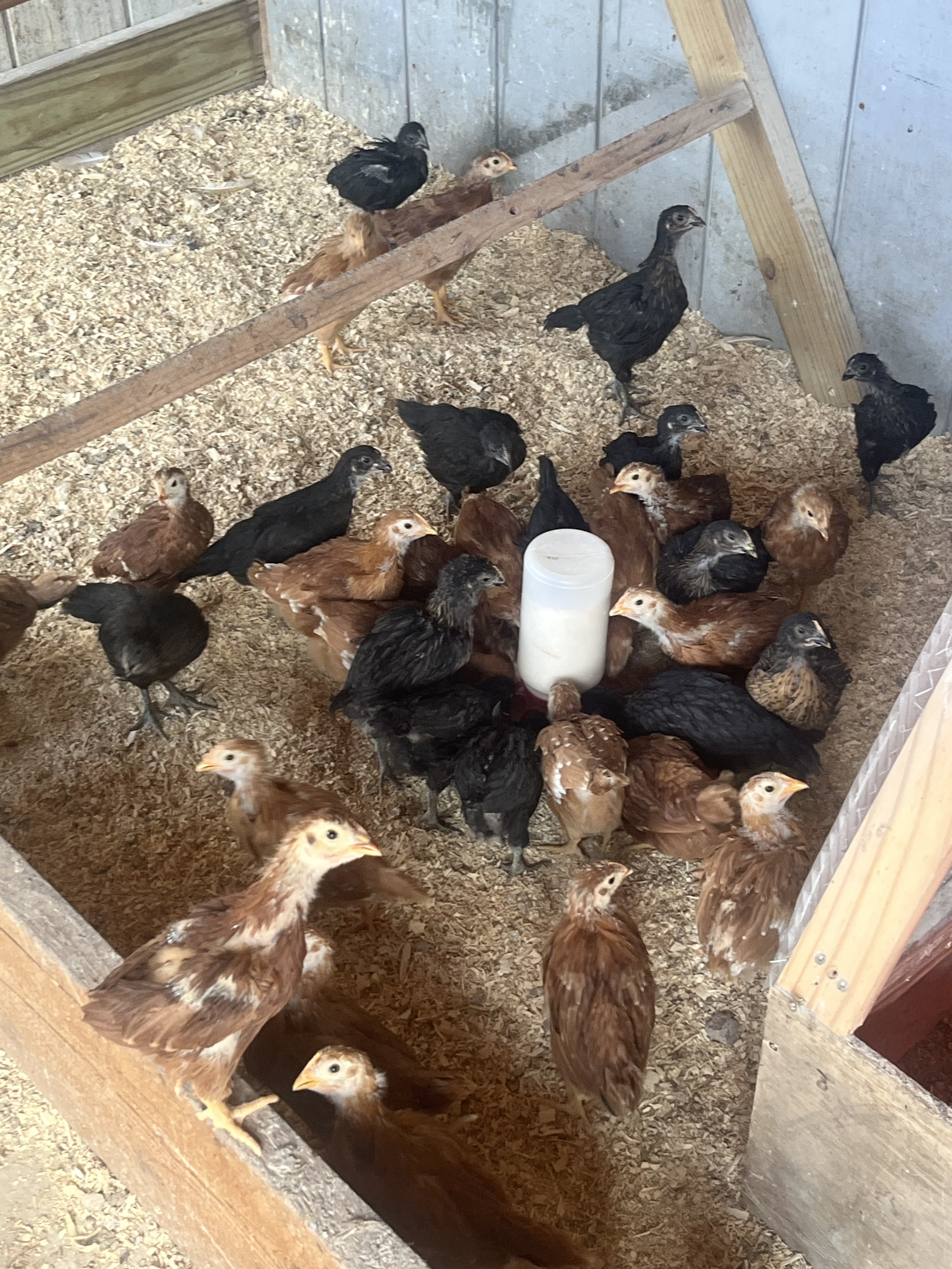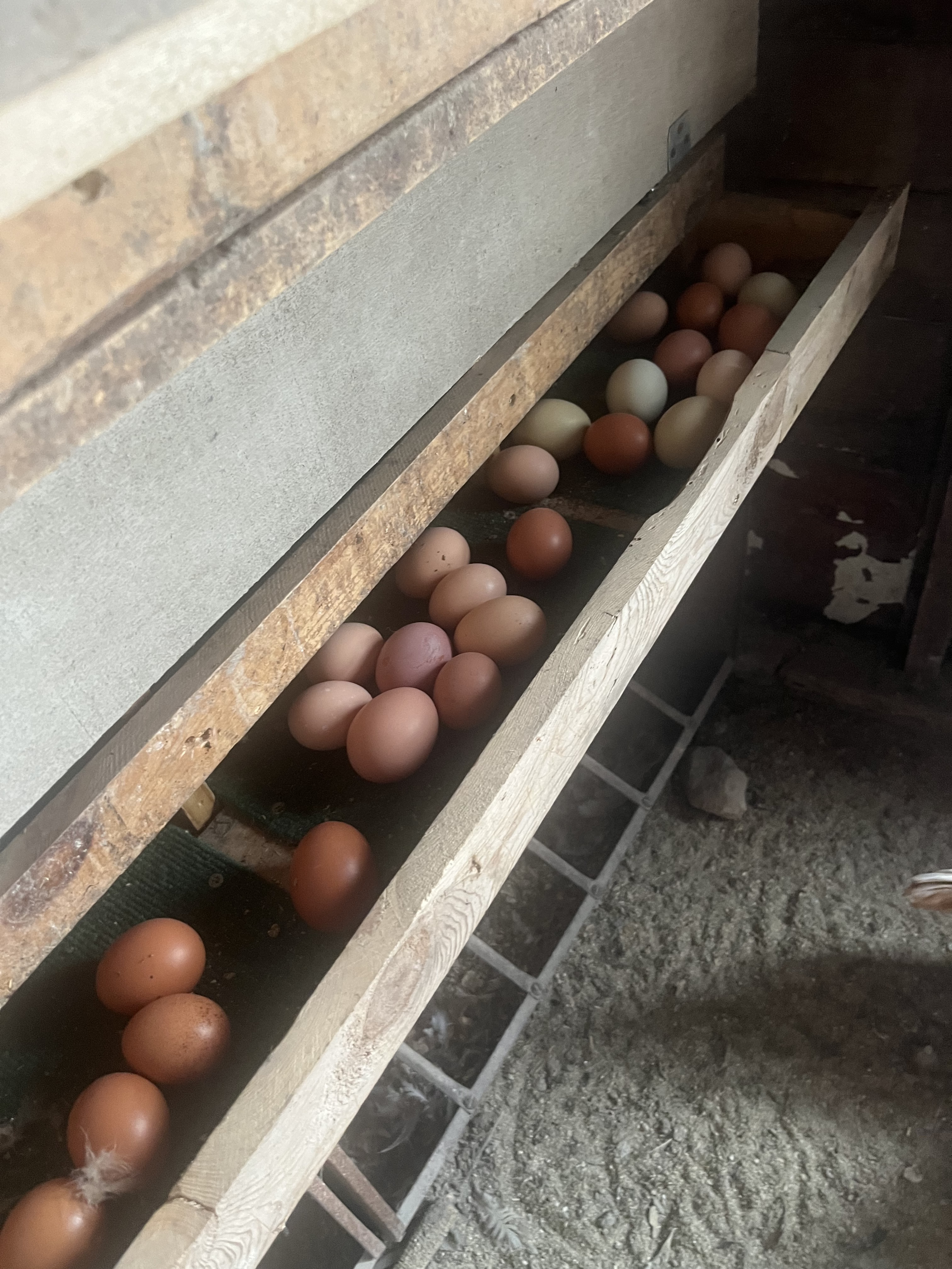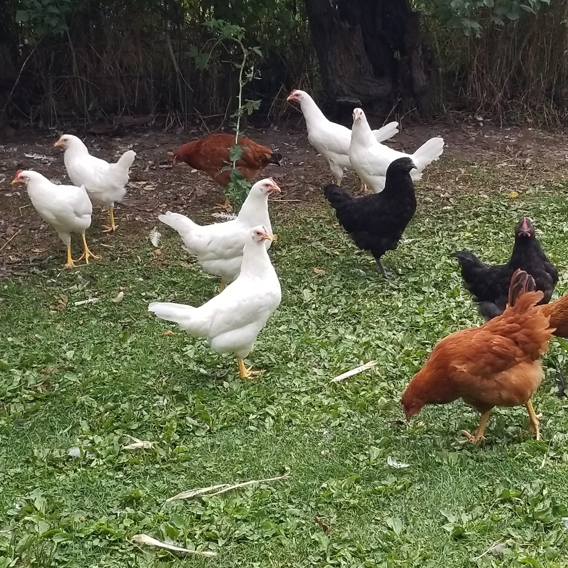 We raise a small flock of chickens. We love getting farm fresh eggs. Steve spends a lot of time trying to tweak our process, to keep the chickens happy and our eggs clean. I (Melissa) think the chickens are his favorite past time.